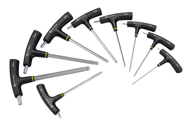 Two-way T-handle ball point hex/Torx® wrench set.